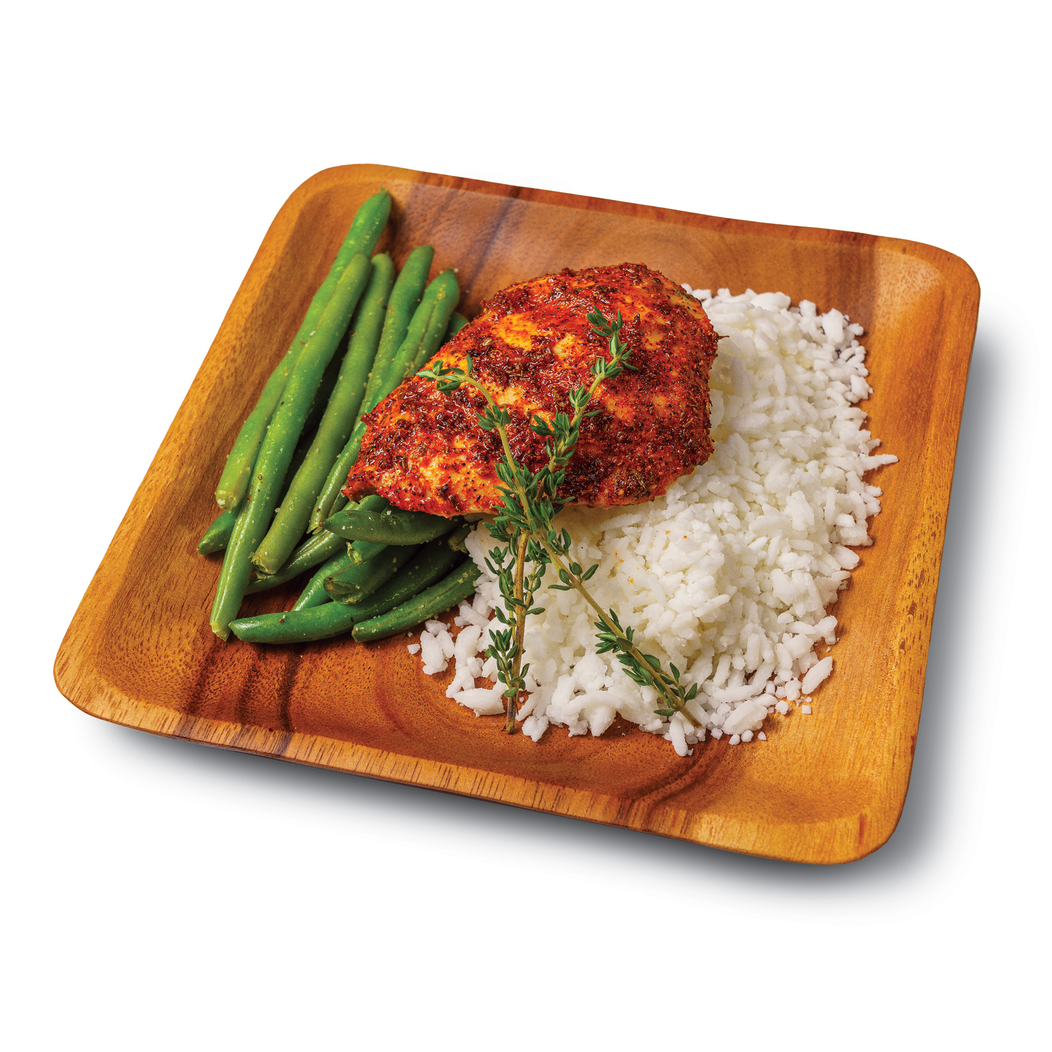 If you’re on the hunt for a low calorie, high protein dish to reach your health goals, look no further. Our Bold Blackened Chicken & Jazzy Rice is the perfect dish to ignite your taste buds & leave you satisfied. This yummy blackened chicken is served alongside a bed of jasmine rice & crisp green beans.